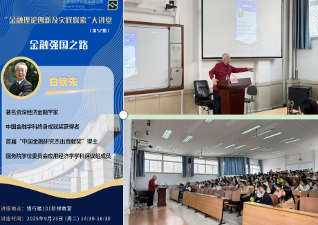 师生进行了一场主题为“金融强国之路”的专题讲座。白教授以其亲历改革开放的广阔视角和深厚的学术积淀,为在场师生上了一堂融汇学术思想、家国情怀与人生智慧的精彩大课。