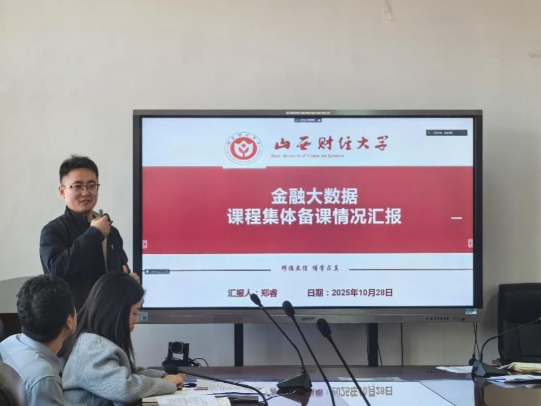 再次举办集体备课汇报交流活动。郑睿老师代表《金融大数据》课程团队作主题汇报,围绕课程定位、内容创新与考核设计等方面进行了系统分享与深入交流。